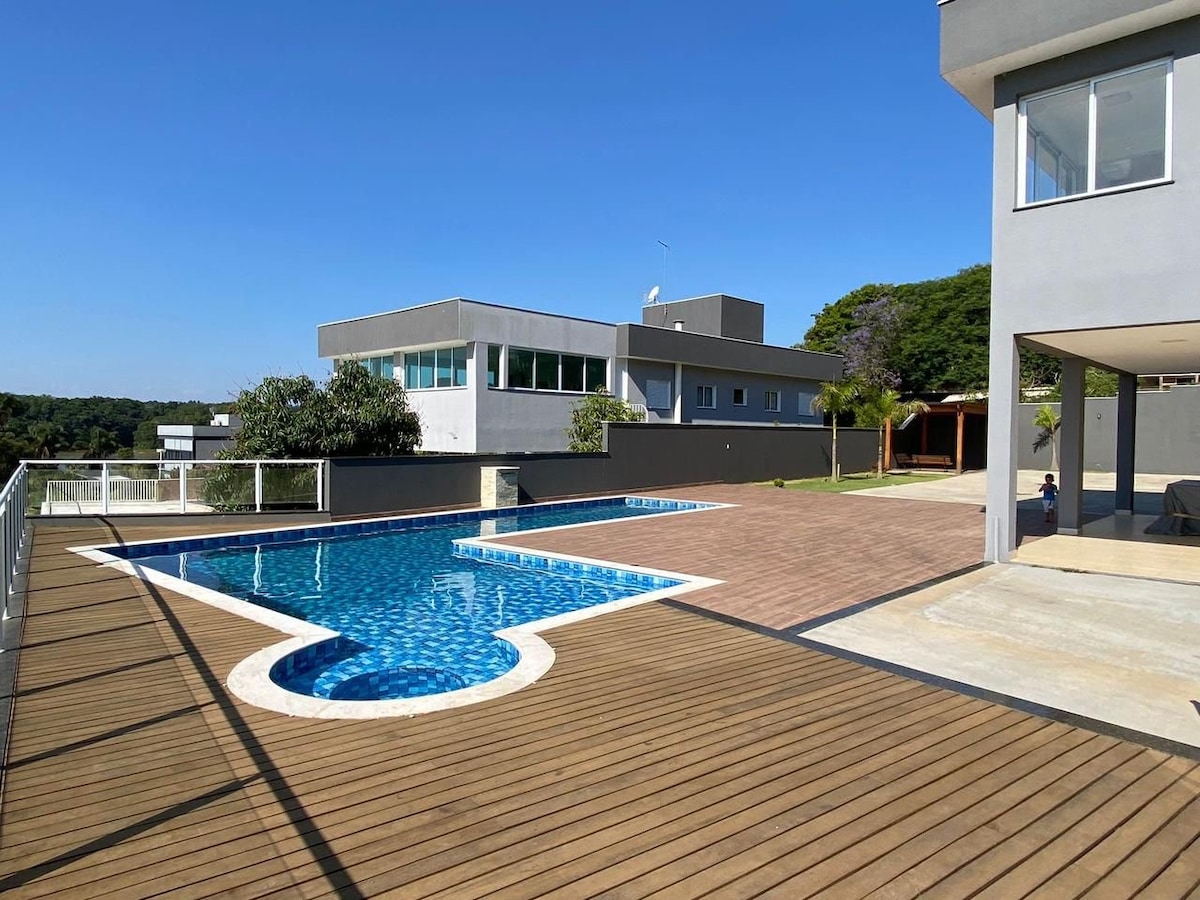 Enjoy moments of leisure in a beautiful country house, surrounded by nature and with a wonderful condominium structure with access to the dam. Ideal for families and groups who want to disconnect and enjoy an exclusive retreat. Gated community in the privileged region of Ibiuna, 1:40 from Sao Paulo. 🏡 Rest in style. Nature, comfort and privacy await you!