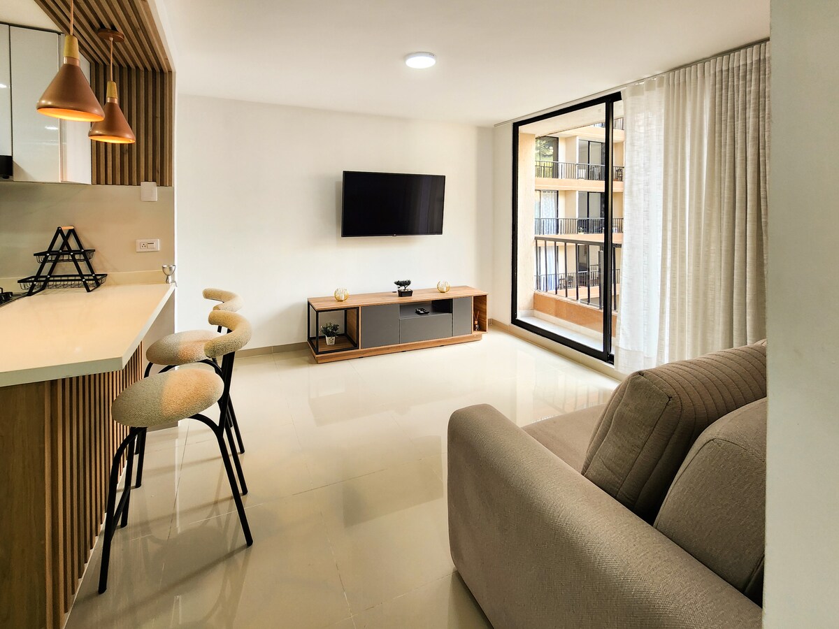 Hermoso y Nuevo apartaestudio con vista donde podrás apreciar encantadores atardeceres. Totalmente amoblado con todo lo que necesitas para tener una excelente estancia; Sala con sofá cama, comedor, balcón grande, Ubicado en conjunto cerrado, tranquilo y seguro. Con excelente zona de restaurantes, supermercados, peluquería y droguerías. Excelente ubicación a pocos minutos de HIC, Foscal, Fosunab, Cardiovascular. Perfecto para profesionales de la salud, pacientes o acompañantes. ¡Siéntete en casa!