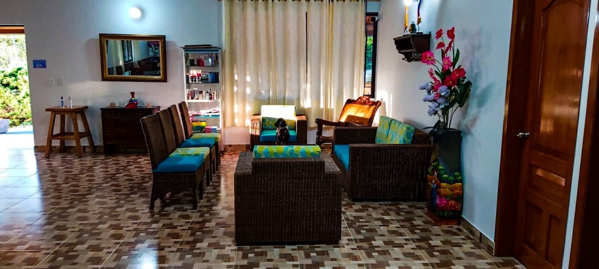 Es una cabaña totalmente dotada, fresca, con un patio jardín amplio al frente y una hermosa vista a los cerros orientales de la vía a Cúcuta. Las zonas comunes son compartidas con los huéspedes de las otras cabañas (tenemos 4 cabañas más) Los eventos no están incluidos ni el salón ni estadero.