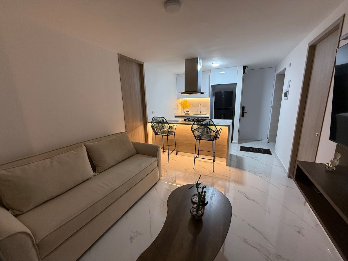 Disfruta de la comodidad de este alojamiento tranquilo y céntrico. Apartamento tipo loft equipado para una estadía placentera. Supermercado y spa en el mismo edificio. Ideal para nomadas digitales, recuperacion de cirugías, viajes de negocios, visitas familiares. Zonas comunes como piscina y gimnasio (disponible para reservaciones mayores a 30 dias y un costo adicional de $80.000)