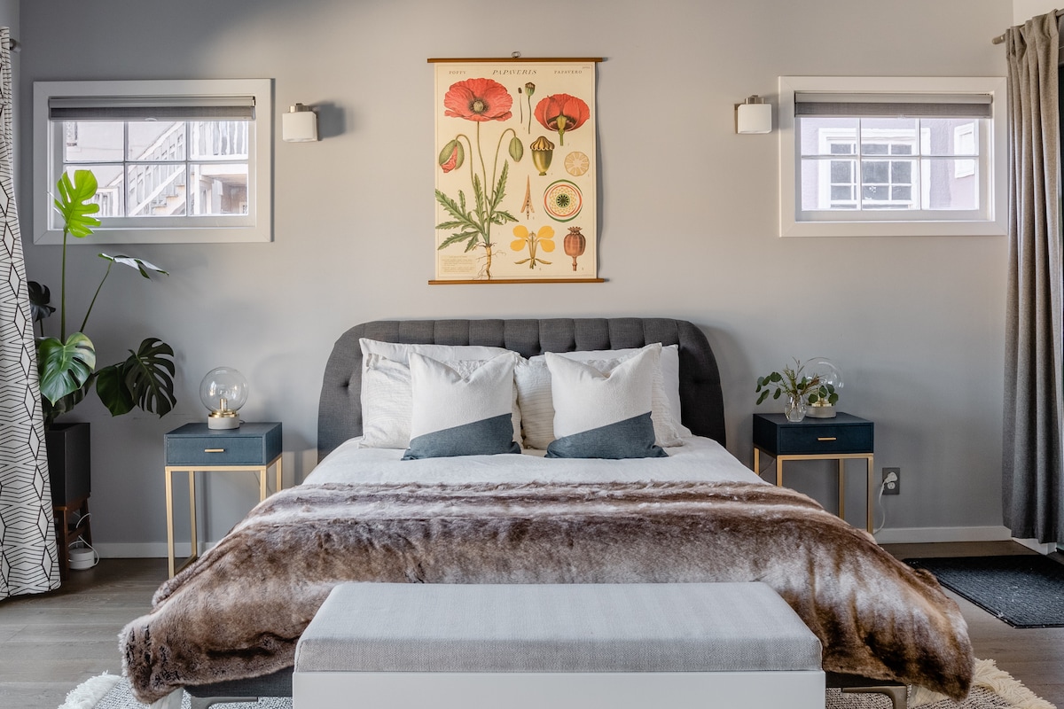 Begin the day in a bathroom with a rain shower, twin vanity, and tiles from Spain. French doors add space and light to the open interior, helping to showcase the striking artworks by Deb, one of Melbourne's leading street artists. This well-lit garden studio has a queen bed next to french doors that open to Juliet balconies. Recently remodeled with new contemporary finishes, this spacious studio has an open floor plan with lots of natural light. The french doors open to give the studio an indoor / outdoor experience. It’s a perfect spot to read on sunny days or have a glass of wine on warm evenings under the stars. The modern bathroom has a new rain shower head, tiles imported from Spain and a washer and dryer. Follow the pathway to the many restaurants, markets, and bars on Grand Avenue, with Trader Joe's and many other shops also close. Visit the historic Grand Lake Theater and the Morcom Rose Garden, and walk the picturesque shores of Lake Merritt. The home is walking distance to Lake Merritt and all the great shops and restaurants on Grand Avenue - one of Oakland's best commercial strips. 19th Street BART stations is a quick bus ride (10 - 15 minutes on the 21, which leaves less than a block from the house) or a Lyft or Uber ride away. Lyft line usually costs under $5 per ride from the home to any of the BART stations in Oakland. There is parking for one car available at the entrance to the studio. The home is also walking distance to Lake Merritt and all the great shops and restaurants on Grand Avenue - one of Oakland's best commercial strips. 19th Street BART stations is a quick bus ride (10 - 15 minutes on the 21, which leaves less than a block from the house) or a Lyft or Uber ride away. Lyft line usually costs under $5 per ride from the home to any of the BART stations in Oakland.