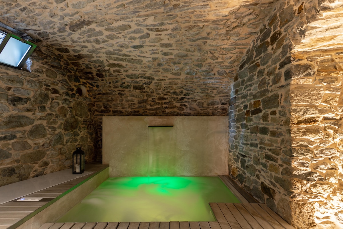 Nel cuore del fabbricato storico, potrai apprezzare il piacere di soggiornare nella camera dotata di minipiscina ad uso esclusivo, con quattro postazioni idromassaggio e una cascata d'acqua per il massaggio cervicale. La vasca idroterapica è utilizzabile a piacimento dalle 9.00 alle 22.00 e si trova all'interno della camera. La temperatura dell'acqua viene mantenuta tra i 30°C e i 34°C circa, igienizzata con cloro per un bagno sicuro. Inoltre, la camera è dotata di un impianto di ventilazione m.
