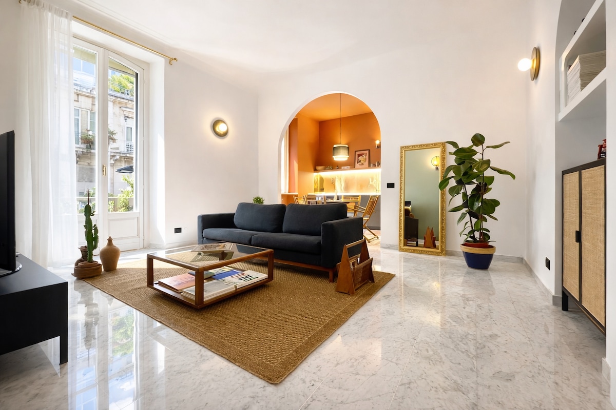 Housed in an early-1900s Liberty building just steps from Milano Centrale, this newly renovated three-room apartment is a space where materials tell a story. Vintage, retro and subtle colonial echoes blend into a refined bohemian aesthetic—eclectic yet restrained. Carrara marble meets teak parquet, round arches shape flow and continuity. Turquoise Moroccan zellige and deep ultramarine glazes bring warmth, craft, and a hint of travel: ours. A soulful, unmistakably Milanese—yet quiet—retreat.