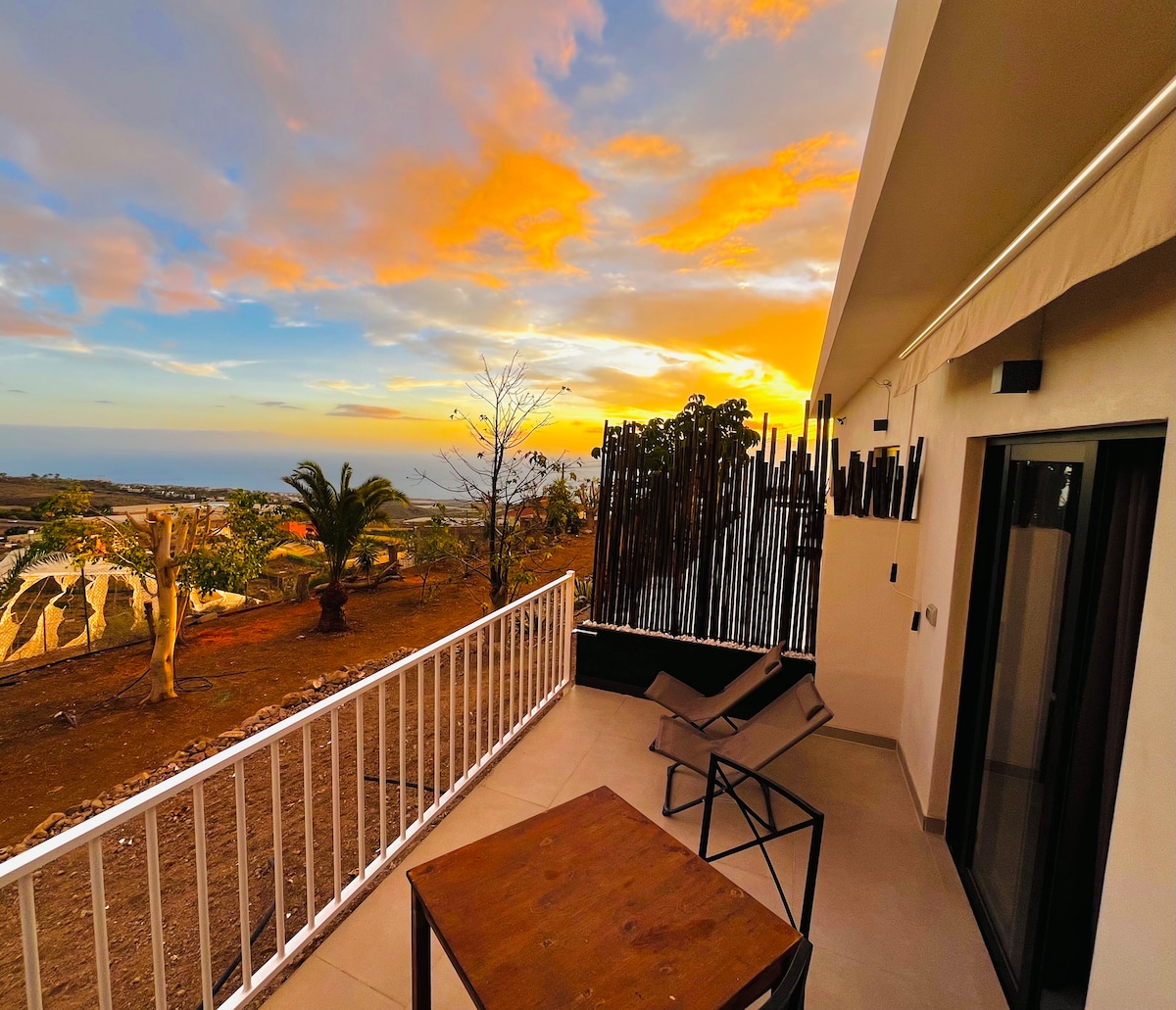In La Tablada, Guia de Isora, Tenerife, within private Estate, one may enjoy a peaceful stay in Oceanview apartment, an open plan duplex apartment offering comfortable accommodation for two persons. As the title indicates, it offers wide angle view of the Atlantic ocean and the islands of La Gomera and La Palma; it faces West, thus it offers rather awesome sun settings. 40 minutes drive from the Tenerife South airport; 10 minutes drive to the sea. Close to Punta Blanca, a well know wave to surf