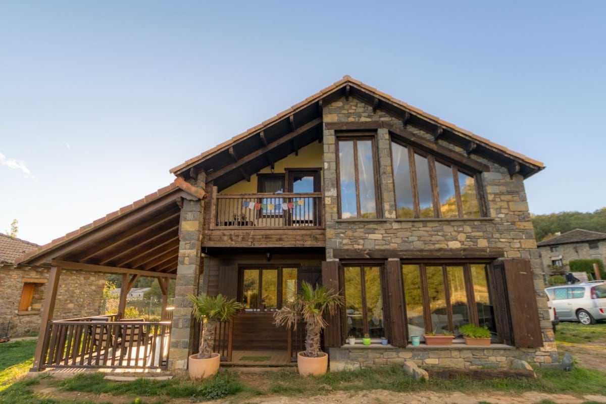 Casa ideal para desconectar del estrés. Sus paredes de piedra son gruesas como muros de castillos, no se oye apenas nada. Al ser una rehabilitación intentando mantener toda su esencia, hipotéticamente, las paredes de piedra podrían ser peligrosas para un bebé o niños de corta edad por sus aristas. Estamos muy cerca del Parque Nacional de Ordesa y Monte Perdido y otros lugares de interés. Si deseáis realizar actividades el entorno es perfecto para: trekking, bike, trailrunning, motorbiikel