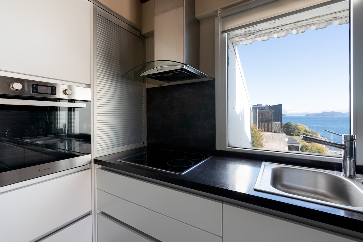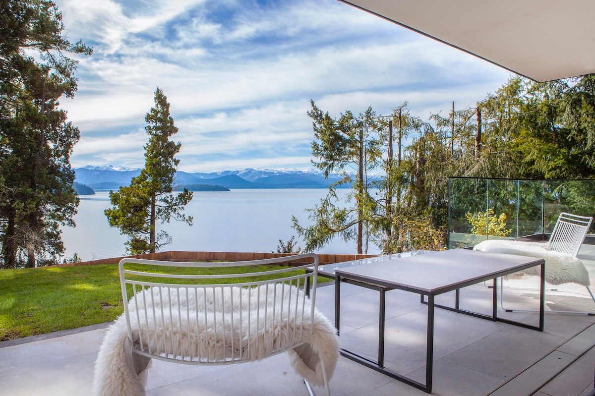 This luxury top floor apartment gives directly onto the lake and has it all: sweeping, unobstructed 360° lake and mountain views, two separate balconies, direct access to the lake shore and fast WiFi. Despite being just a few minutes walk from the centre and conveniently located on the main lake-side avenue, the apartment is quiet, peaceful and completely secluded. Guests are invited to take in the views through the huge triple aspect window as the sun rises over the Patagonian steppe and sets over the Andes.
