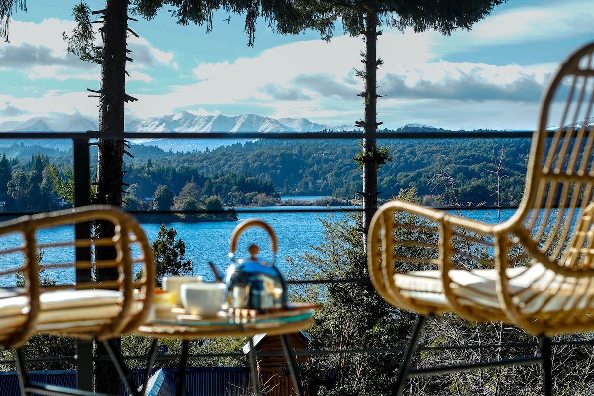 Unveil the best lake view of Patagonia at our brand-new Bariloche Airbnb. Nestled in a serene cypress forest, our cozy unit for two offers unmatched views of Cerro Catedral and Gutierrez Lake. Enjoy tranquility away from downtown, yet with easy access to the airport, Downtown and the biggest ski resort in Latin America. Experience the essence of Patagonia in our independent retreat, where nature's beauty takes center stage. 🖥️ Free Streaming! ❄️ AC 📩We have more units! Just send us a DM