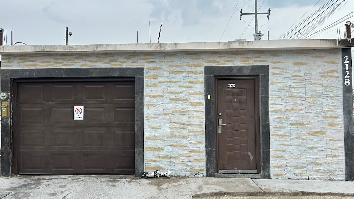 Departamento en zona tranquila. Cuenta con 3 habitaciones equipadas con cama, televisor de 32", minisplit 1 ton 2 tiempos, closet y ganchos para guardar tu ropa en estadias largas. Refrigerador, estufa , cafetera, licuadora, artículos para cocina. 15 min del puente internacional 8 min de aurrera, soriana 5 min de hospital empresas littelfuse, EKM, vidriera, cervecera cerca. el costo no incluye uso de jacuzzi (ver precios en reglas de la casa)