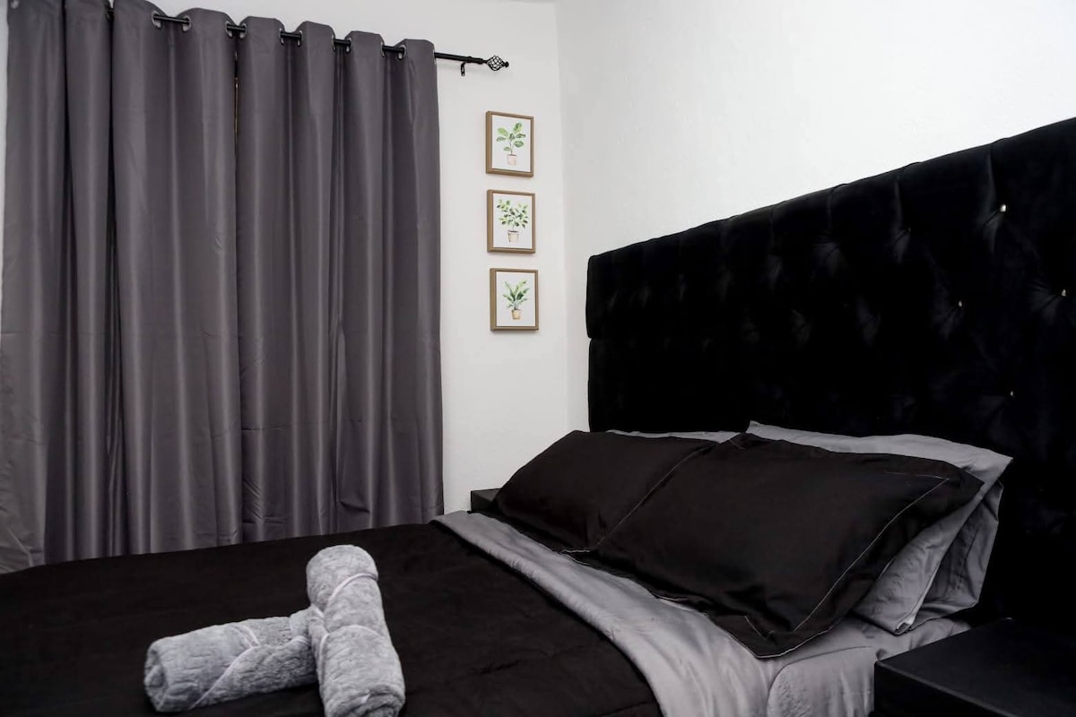 • 0.7 mi from International Bridge (5 min) • Fast and stable Wi-Fi • Hot/cold A/C throughout the space • Covered standard-size parking • Self check-in (digital lock) • Independent and private access • Restaurants, shops 5 min away • Equipped kitchenette with coffee area • Purified water included • Home office space • Pet-friendly • Motion sensor lights outside (night arrivals) • Invoice available