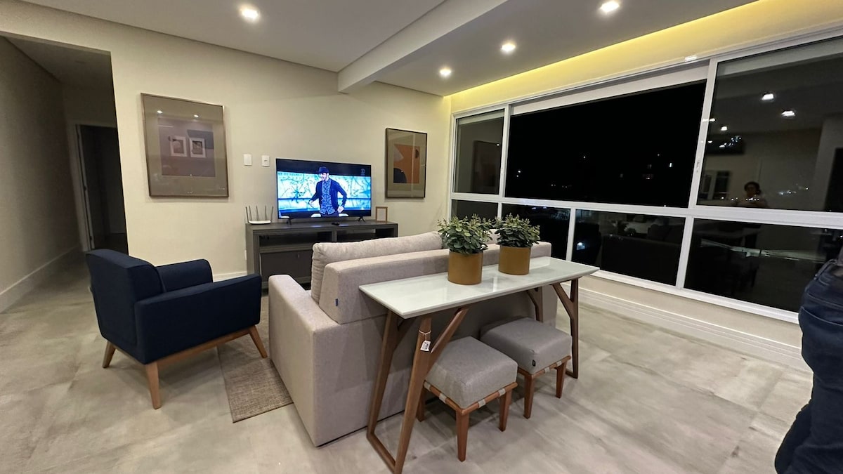 Curta uma excepcional experiência em nosso belíssimo apartamento! Edifício com apenas 2 anos, mobília toda nova e recém instalada. Excelente localização, próximo ao centro comercial e das principais ruas da cidade, em frente a um supermercado. Duas suítes mobiliadas. Fornecemos lençóis, travesseiros, cobertores, edredons e toalhas de ótima qualidade. Ar condicionado em todos os cômodos. Tudo equipado e pensado para você se sentir em casa! Edifício com elevador e ampla vaga de garagem.