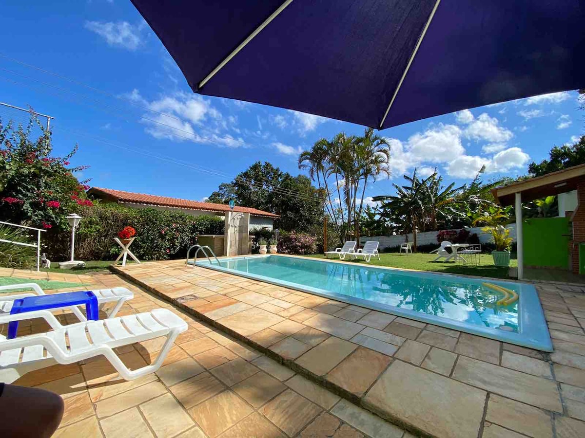Venham se hospedar na casinha mais charmosa de Serra Negra 🏠 contando com piscina com Spa, fogo de chão, redes no jardim, pergolado, parquinho para as crianças, uma área de churrasco bem e ampla e um belo jardim para você e sua família descansar e se divertir com muito conforto, apenas 5 minutos de centro da cidade 🥰