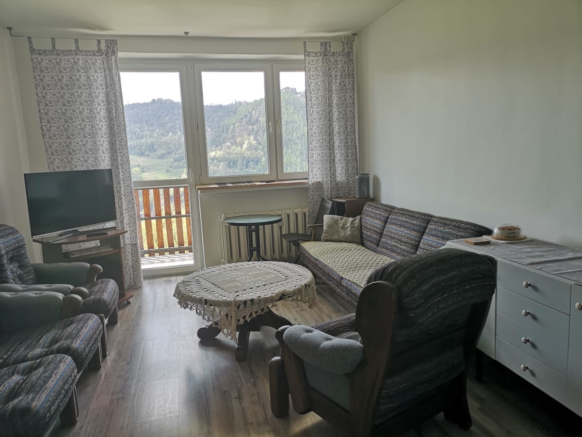 Apartament w całości wyłącznie dla Gości z wi-fi , w przystępnej cenie, z pięknym widokiem na panoramę Pienin, od Jarmuty przez Palenicę po Bryjarkę. Blisko szlaków turystycznych, Dworku Gościnnego, Rynku Dietla, Palenicy, Grajcarka i Dunajca. Apartament mieści się na III p., posiada trzy oddzielne, sypialnie, łazienkę, toaletę, kuchnię oraz przestronny salon z balkonem. Bezpłatne miejsca postojowe i dobrze zaopatrzony sklep w pobliżu. Świetna baza wypadowa w każdą stronę.