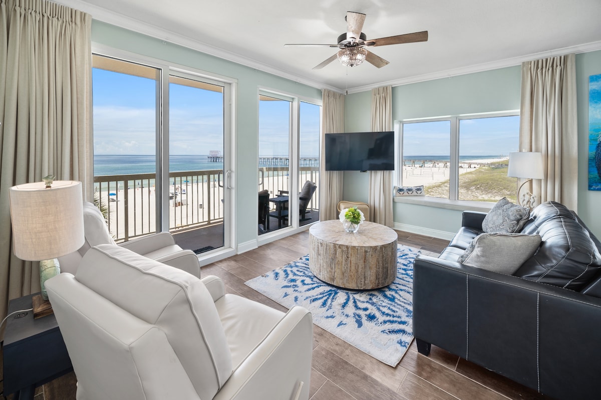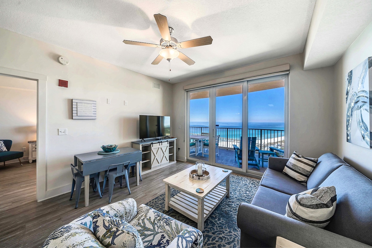 Luxury 2 bedroom, 2 bath wrap around balcony with incredible gulf views and a walk to Pier Park! The sunsets are truly incredible! A highly desired end unit, Gulf Front Master Bedroom with King bed, a large en suite bathroom with a luxurious tub and shower. The second bedroom also features a queen and twin bed. This condo also includes a large living area, large kitchen island to accommodate your group. Bring the family, and enjoy the getaway you've been waiting for!