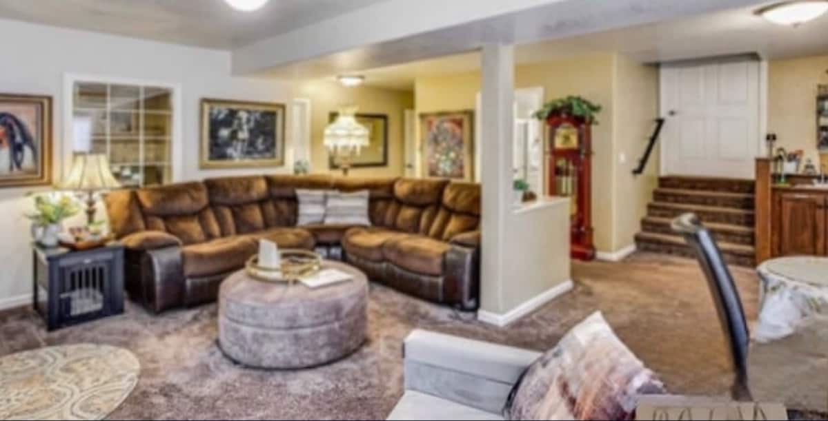 Rest on the edge of adventure. Get away to a quiet park-like retreat where fun & convenience is just around the corner. We are located in a quiet neighborhood bordering a greenbelt just outside historic Black Diamond. Whether you’re interested in a day of antiquing, fishing at one of many nearby lakes, lacing up your boots for a hike or jumping on your skis you are only minutes away. Your separate rental space is accessible by an outdoor stairway into a private garden setting & back entrance.