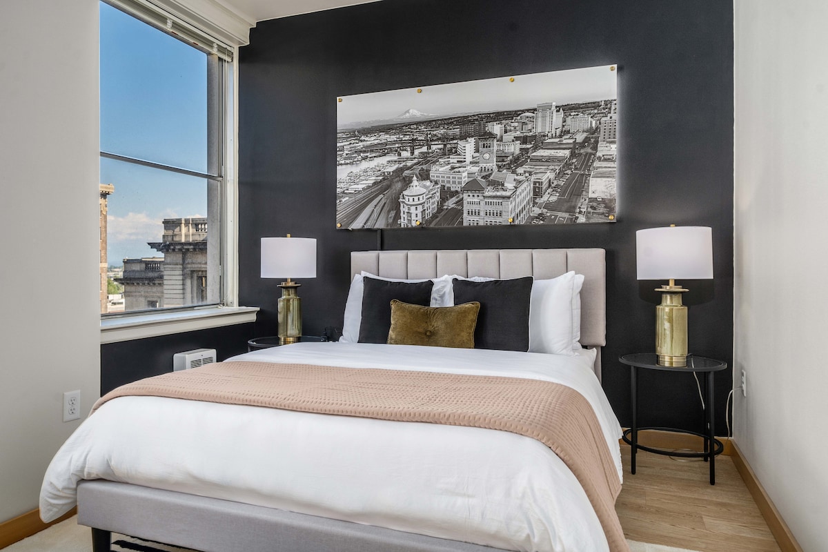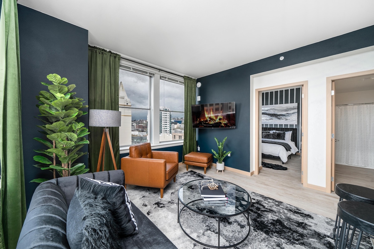 Enjoy the elegance and charm of beautiful Downtown Tacoma while staying at La Maison Élégante, a Modern stylish Deco studio apartment in the heart of Downtown Tacoma WA. The Queen bed and futon sleeper sofa comfort will add a little piece of mind to your stay. Located at the top floor of a luxurious building with a stunning scenery of downtown and mountains. Enjoy the Rooftop Deck, State of the Art Fitness Center, Billiards Lounge, club house and Concierge. Please Note: Pets & Smoke Free