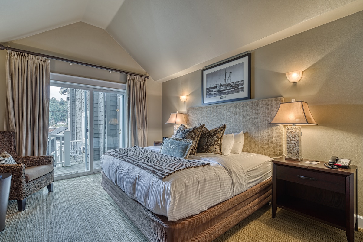 NO RESORT OR CLEANING FEES Discover an award-winning boutique hotel nestled in the heart of Washington's premier historic seaside village. Escape the noise of freeways and city life to find tranquility in our serene setting, surrounded by stunning harbor views and the majestic rise of Mt. Rainier to the east. Spot playful porpoises in the harbor, watch seals bask on the docks, or paddle past the iconic lighthouse, where orcas often make an appearance. Your peaceful coastal getaway awaits!