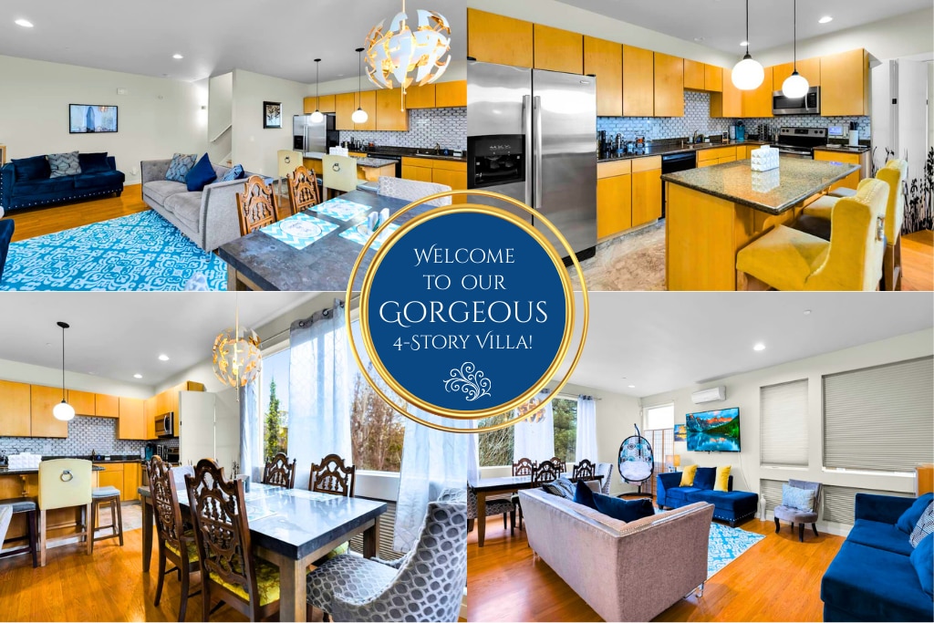Come enjoy a brand new, carefully decorated 4-bedroom townhouse. Snuggle by the fireplace with a book, jam to the vintage jukebox or test your skills with vintage pinball or ping-pong. Barbeque in the fenced back yard and prepare your feast in the fully-stocked kitchen. Features: • 4 beds; 1 king, 3 queens • 1970s record-playing jukebox • Pinball Machine • Ping-Pong Table • Fenced in Yard • Barbecue • Smart TV in Master and Living Room • Fireplace
