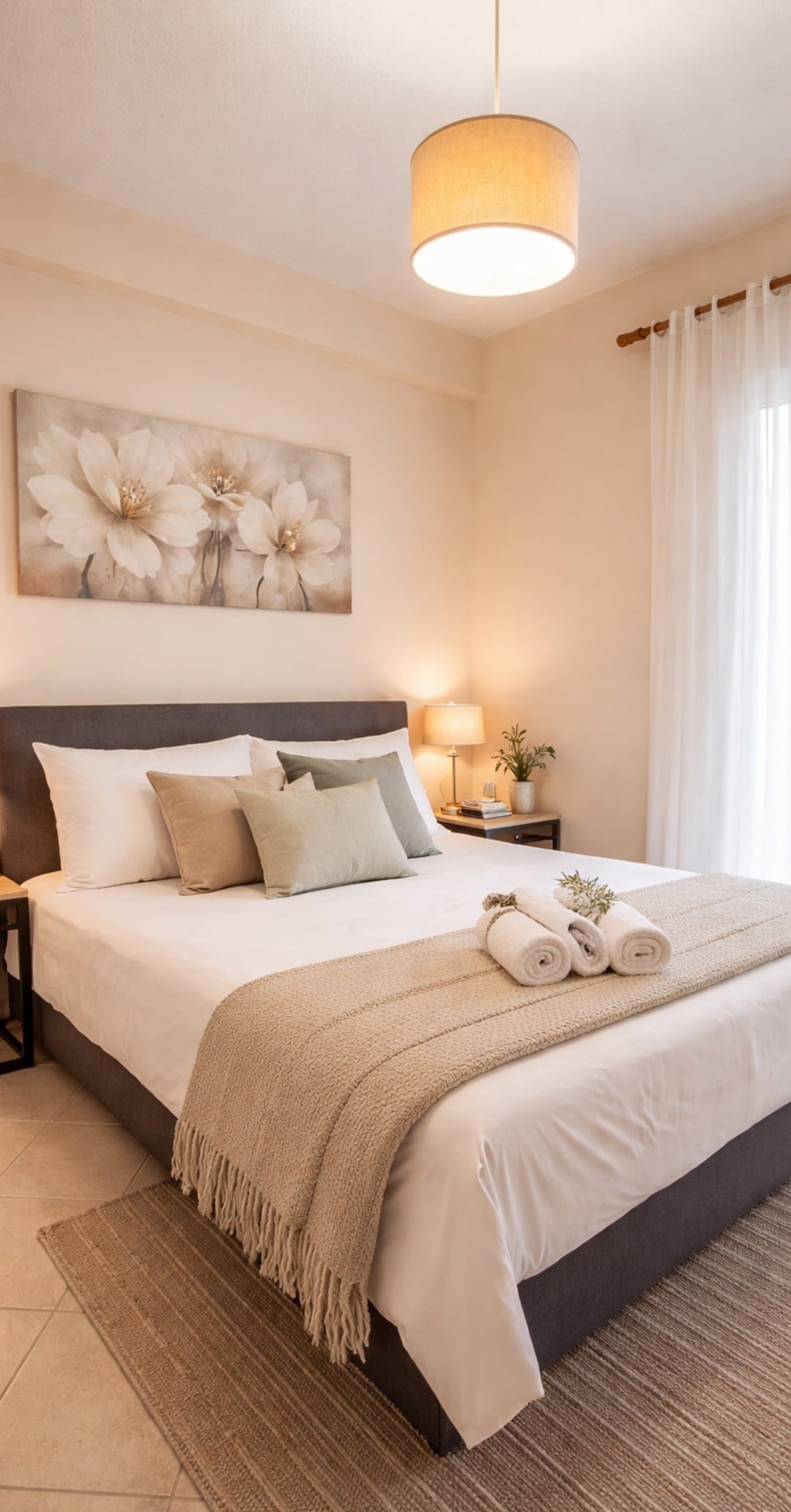 Απολαύστε τη διαμονή σας σ’ ένα φωτεινό διαμέρισμα μόλις λίγα βήματα από την παραλία της Περαίας! Ιδανικό για οικογένειες ή ζευγάρια, με άνετο καθιστικό, πλήρως εξοπλισμένη κουζίνα και μπαλκόνι για πρωινό με θέα θάλασσα. Σε ήσυχη περιοχή, κοντά σε εστιατόρια, καφέ και στάση λεωφορείου προς Θεσσαλονίκη.