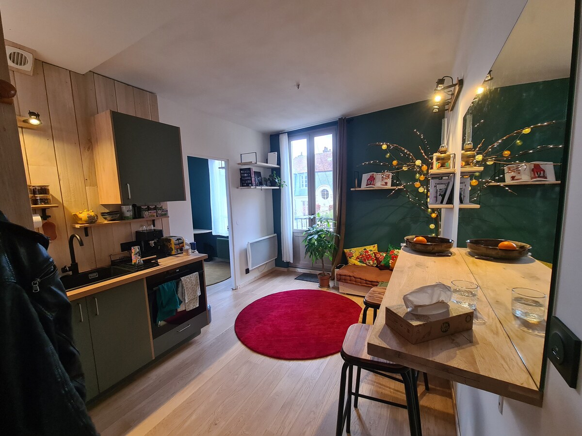 Charmant studio lumineux situé au 1er étage sans ascenseur. Studio de 22m2 tout confort, composé d une pièce de vie avec un canapé-lit, télé, box (wifi), une table pliante avec deux chaises et un placard de rangement. Une cuisine, comprenant une plaque de cuisson , frigidaire, four micro-onde, cafetière nespresso. Une salle de bain avec baignoire , wc, évier et miroir. Parking proche. Proche de toutes commodités. Possibilité de laisser vos vélos à l’intérieur de l’immeuble, cour commune privée