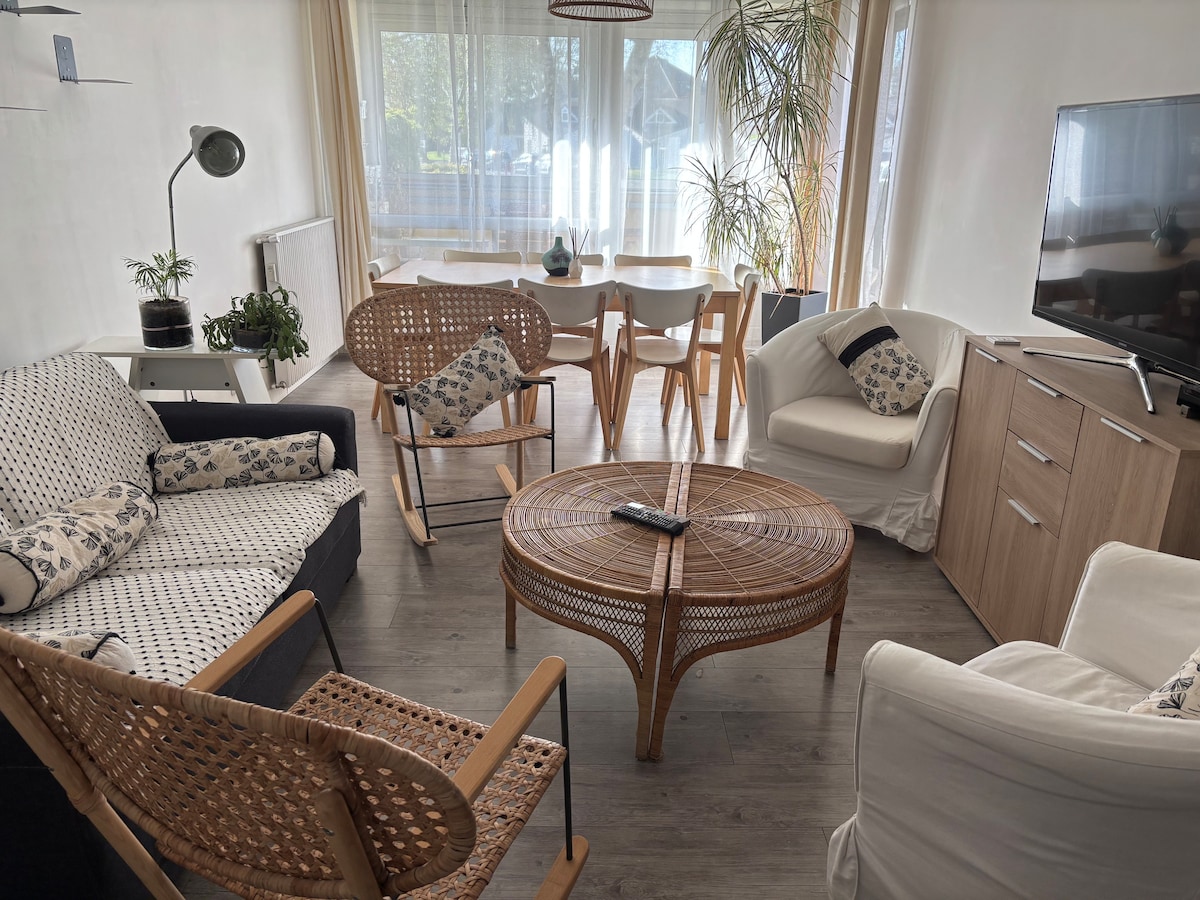 Vous cherchez un appartement où vous serez totalement autonome et comme à la maison ? Alors venez découvrir cet appartement de 100m2 calme et lumineux, pouvant accueillir jusqu'à 8 personnes. Un sas d'entrée vous mènera à l'étage où vous disposerez de 4 chambres dont une avec un balcon aménagé. Une cuisine toute équipée en plus du lave linge, seche linge & lave vaisselle . Un salon avec TV prime video et Netflix, d'une salle d'eau avec double vasque et douche à l'italienne & d'un WC séparé.,
