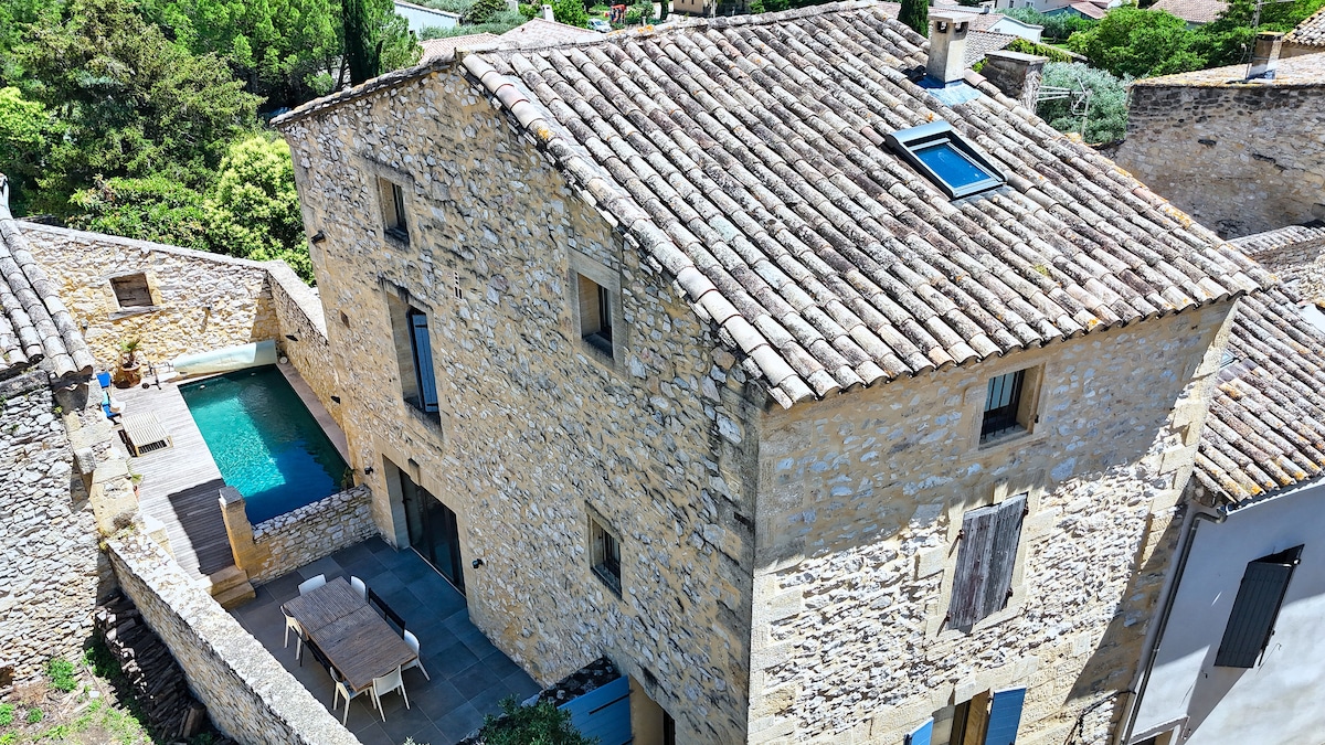 Maison de village en pierre avec piscine, décorée et rénovée par architecte avec le charme de l'ancien. À 5min du Pont du Gard, 25min gare TGV Avignon et 15min Uzès. Parfaite pour famille et amis: grande cuisine, salon avec cheminée, salle de jeu, terrasse bbq et piscine, au cœur d'un village avec épicerie, café et boulangerie à pied. 3 chambres avec chacune sa sdb dont une avec terrasse et vue sur la garrigue, et une salle TV/canapé lit. Des meubles design, et tout pour recevoir !