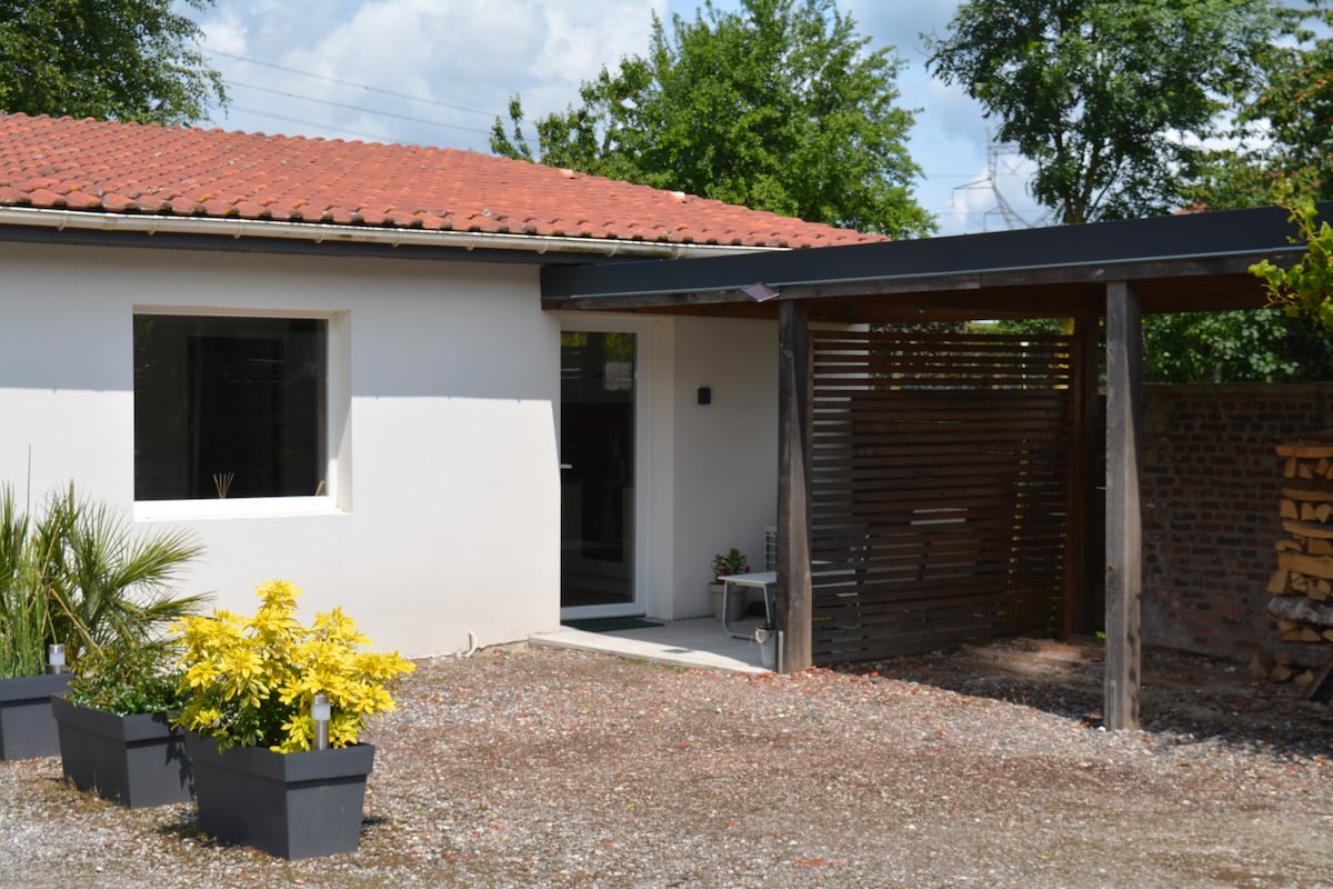 Ma modeste et accueillante maison, que je partage, offre, aux voyageurs, les moyens de se détendre, de se restaurer et surtout de se reposer. La chambre est grande, très calme et confortable avec son lit queen size, son coin thé ou café et son bureau face à la fenêtre. La salle de bain est agréable et fonctionnelle. Le séjour et la cuisine sont aussi à leur disposition pour une cuisine rapide… la terrasse plein sud et le jardin leur offrent la possibilité de manger dehors ou prendre le soleil sur la terrasse. Enfin tous les ingrédients sont là pour passer un séjour apaisant et reposant.