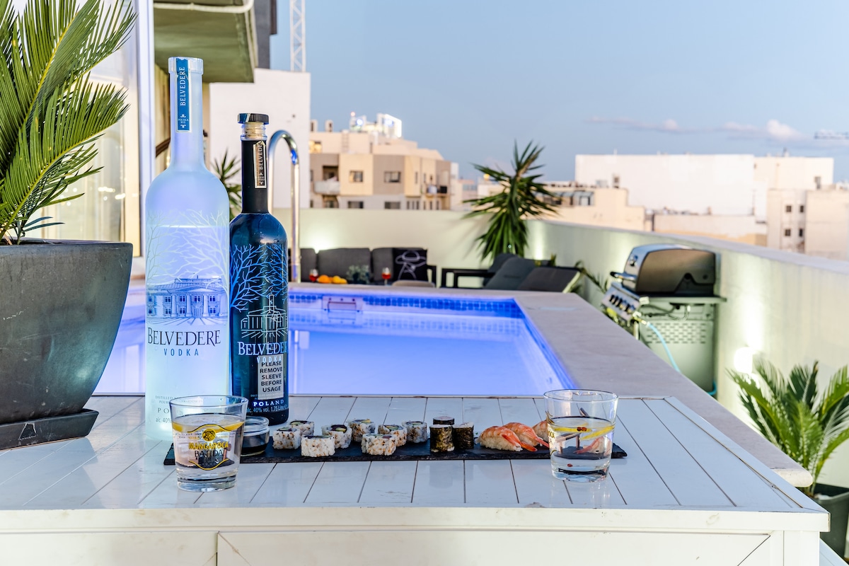 Take it easy at this unique and tranquil one-bedroom penthouse suite. An amazing sun terrace with a multiple seat hot spa, boasting an amazing yacht marina panorama and also unique village views, centrally located mid-way on the promenade leading to Valletta and Sliema. The penthouse has a main bedroom with a King Size Bed, and also a Double Sofa-Bed (available upon request); a combined kitchen / living / dining room, and a back terrace with outdoor dining furniture.