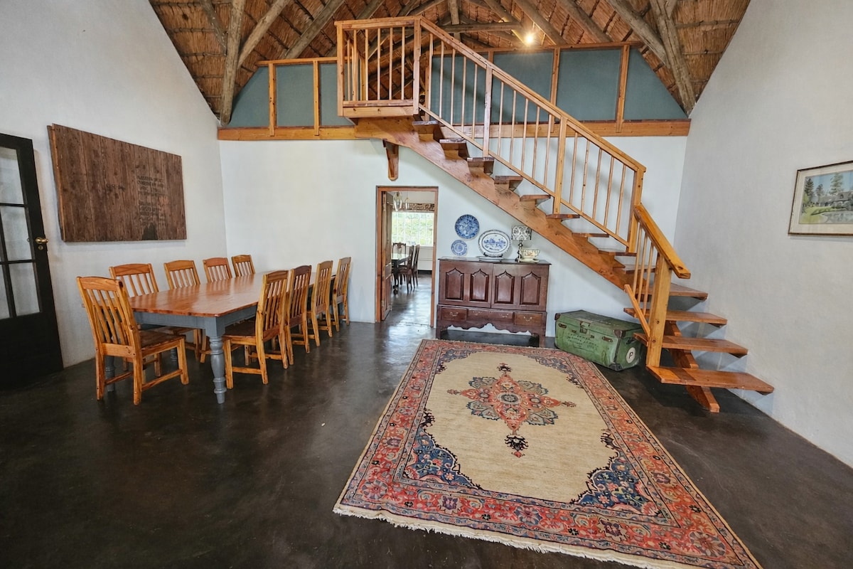 A large thatch farm house on a running family egg farm. The property has been in the family for generations and is the perfect spot for a group to escape the hustle and bustle of the city. Cattle to see in the surrounding fields, a large pool to cool off in, large garden for all ages to enjoy. Easily accessed from the N3, a short drive on a dirt road to the best of both worlds. Remote & peaceful, yet super close to town & restaurants. A peaceful place to enjoy and relax in.
