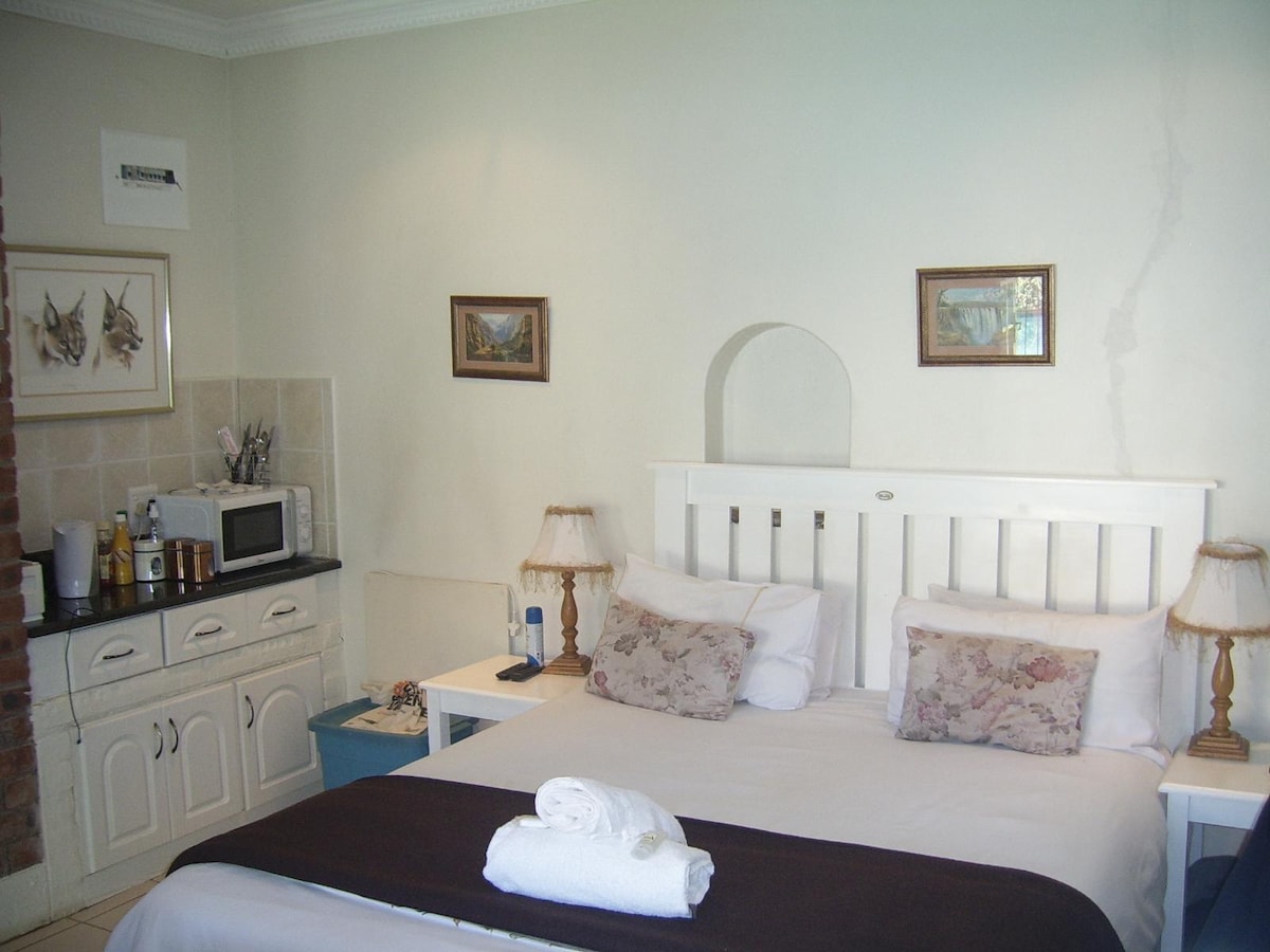 Forget your worries in this spacious and serene space. We are situated in a conservancy with abundant birdlife, with eagles swooping over the lush green valley. We are 3 km from the closest school, 5 km from the Quarry Centre, which would cater for most of your needs. All our lighting is covered by an inverter, and we have two standyby generators to charge up fridges, geysers, cell phones, etc. The entire boundary of the property has an electric fence with security lights and armed response.