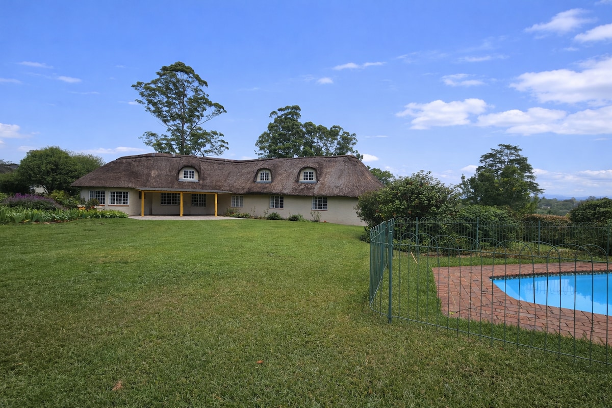 A large thatch farm house on a running family egg farm. The property has been in the family for generations and is the perfect spot for a group to escape the hustle and bustle of the city. Cattle to see in the surrounding fields, a large pool to cool off in, large garden for all ages to enjoy. Easily accessed from the N3, a short drive on a dirt road to the best of both worlds. Remote & peaceful, yet super close to town & restaurants. A peaceful place to enjoy and relax in.