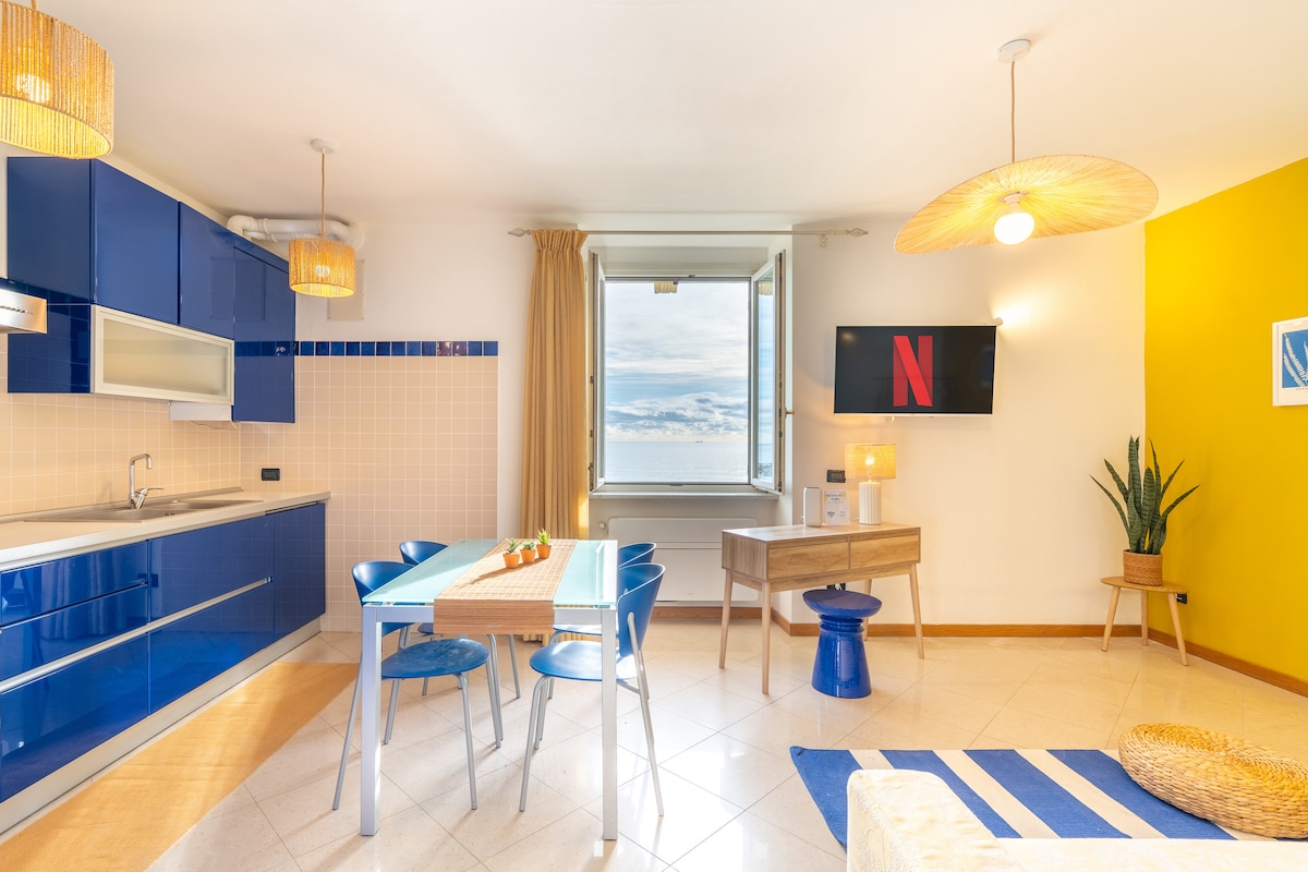 appartamento al 1o piano completamente ristrutturato nel 2021 -completo di tutto eccetto lavatrice(lavanderia a 200mt) -terrazzo -smart tv 41" no via cavo -postazione di lavoro -self check entro i 50mt:porto antico, ristoranti e bar, mercato con prodotti locali, parcheggi a pagamento entro i 200mt:spiagge a pagamento o libere(sabbia e pietre), parcheggi liberi >> posizione centrale ma molto silenziosa, ideale per chi volesse anche lavorare in remoto e avesse bisogno di un pò di concentrazione