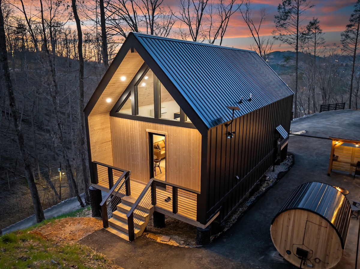 Sauna + Cliffside Hot Tub • Modern Mountain Cabin