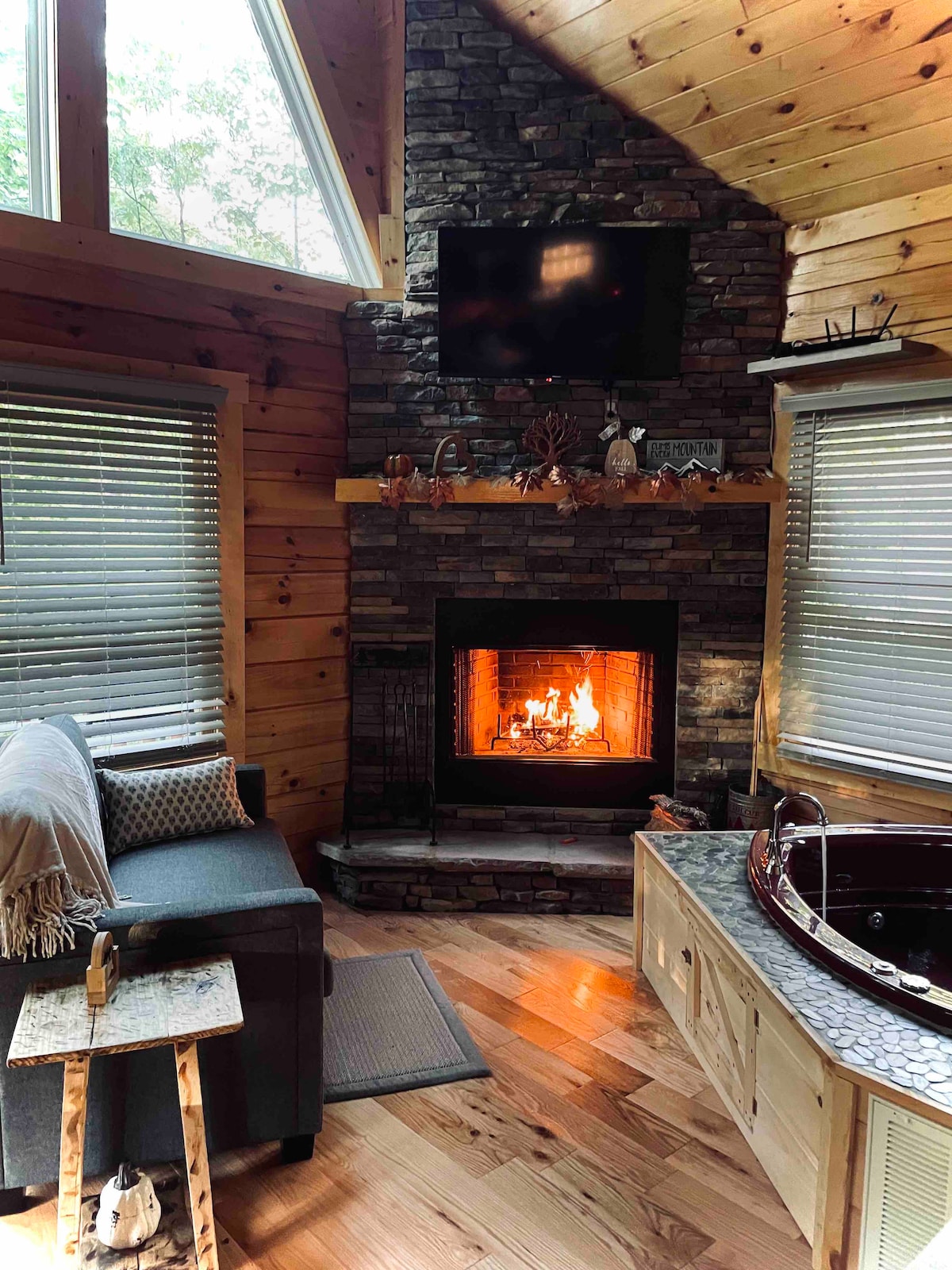Cozy Escape for couples Heart tub Fireplace Hottub