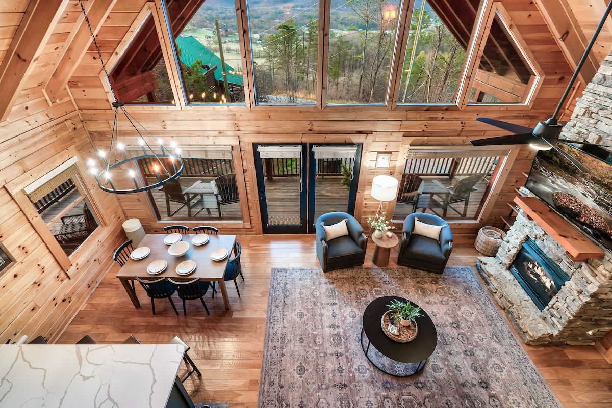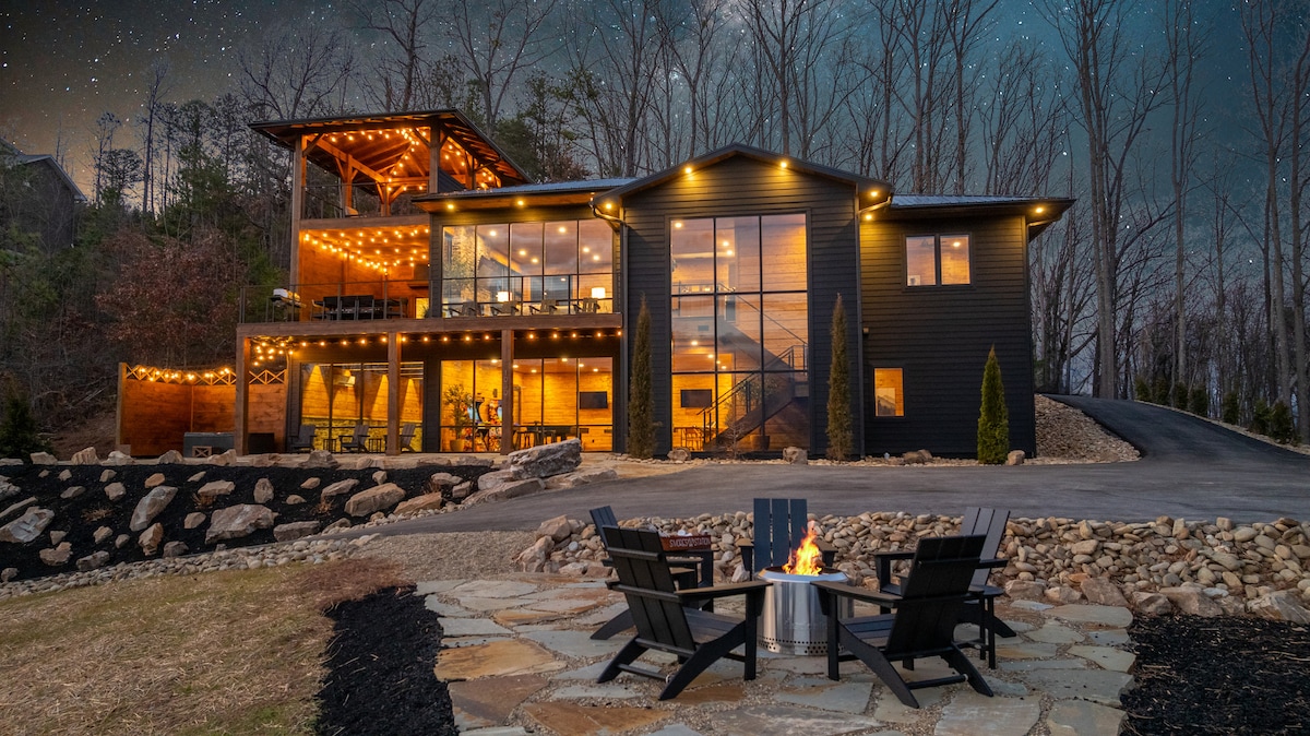 🌲 Wake up to mountain views and end your day stargazing by the fire.🌲 ✔TWO King Bedrooms + Bunk Room (Blackout Curtains in all bedrooms) ✔FREE Pool Access ✔ Hot Tub ✔Cades Cove + GSMNP “secret entrance” ✔Arcade + Digital Game Table ✔Four Smart TVS ✔Wrap Around Deck ✔ High End, Fully Stocked Kitchen ✔ Fireplace ✔ Gorgeous Outdoor Fire Pit Perfect for nature lovers, families and couples--this thoughtfully designed retreat blends upscale finishes with cozy comfort and fun for all ages.