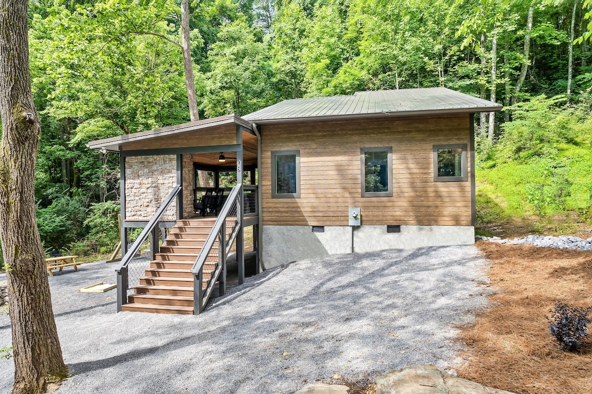 ✅Hot Tub ✅Mountain views ✅Firepit (propane provided) ✅Electric Fireplace ✅Wet room (large soaker tub and shower) ✅Blackstone Grill (propane provided) ✅Large covered porch w/outdoor dining ✅Brand New Modern-Compact Cabin (600 sq ft) ✅ Private Gated Communityw/Security ✅ Community Pool (seasonal), Tennis Courts, Pickleball Court & Playground! ✅1 Bedroom (King Bed)/1 Bath w/sofa bed (queen) ✅Washer/Dryer, Dishwasher, Oven, and Fridge! ✅Vintage board games ✅Cornhole Boards ✅ Record Player