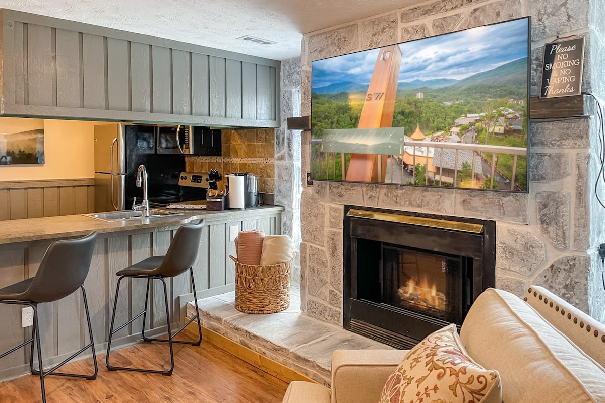 Your romantic Smoky Mountain escape awaits! Steps from Anakeesta and downtown Gatlinburg, this cozy, beautifully designed condo is exactly as pictured spotless, quiet, and easy from check-in to checkout. Enjoy a plush queen bed, with luxury bedding, a full kitchen complete with spices, a spa-style walk-in shower, a gas fireplace, full coffee bar, free parking, and a private patio. We also provide 22 FREE attraction tickets daily with just the ease of a link and a live human to help you.