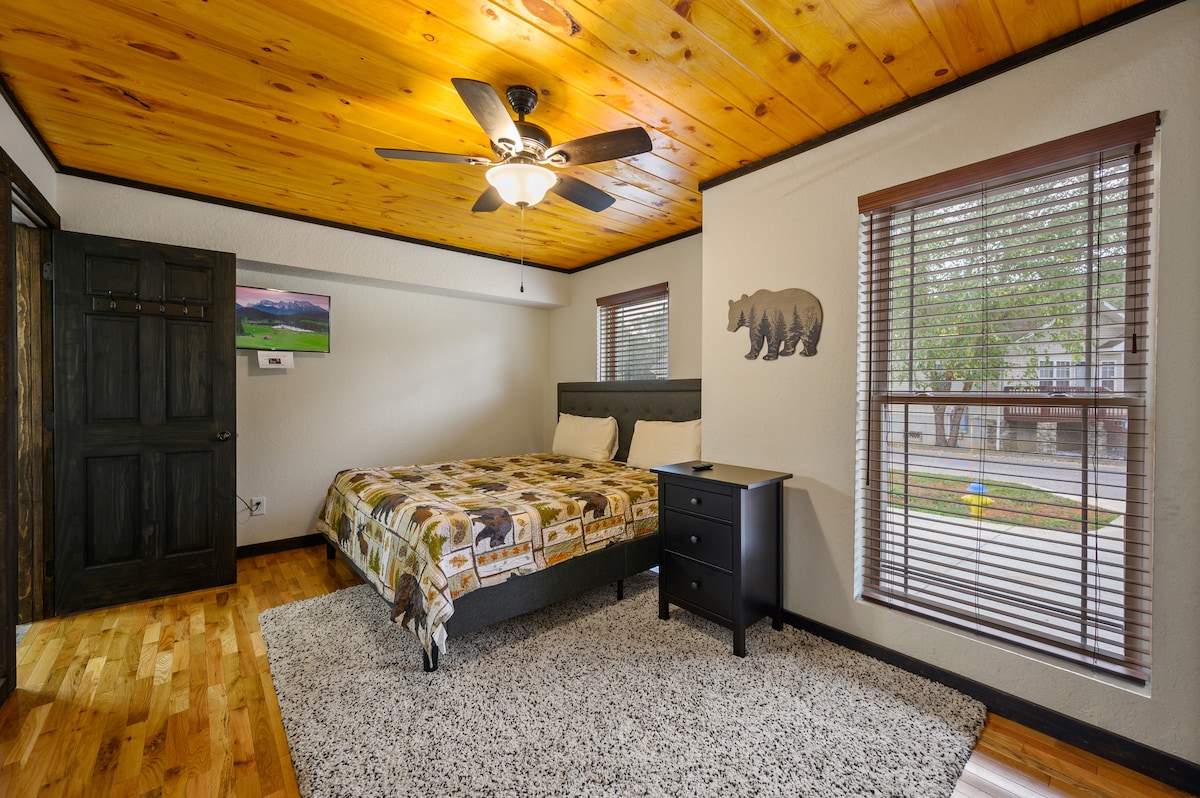Perched atop Chalet Village, Worth the Climb lives up to its name with breathtaking Smoky Mountain views, stunning sunrises, and a chance to spot wildlife like bears. This one-bedroom, pet-friendly cabin near Ober Gatlinburg features a private hot tub and peaceful seclusion just 3.7 miles from downtown and 8 from Pigeon Forge. Guests also enjoy seasonal access to a clubhouse pool for a refreshing dip after mountain adventures. Must be 21+ to book. Pets allowed with fee.