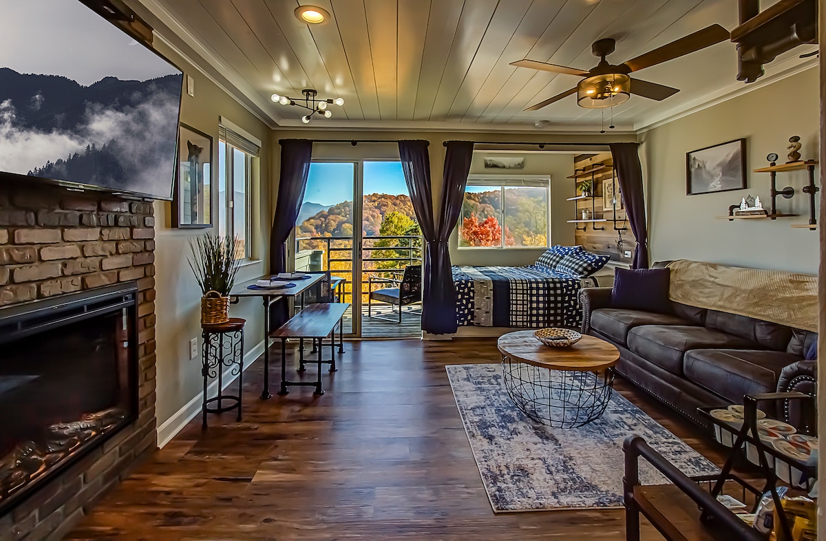 At Above the Trees you will look at the view and forget why you even have stress. This freshly renovated, comfy studio is perfect for 2 people to kick their feet up to take in the mountaintop beauty. Located only 3.5 miles from downtown Gatlinburg where shopping, siteseeing, and hiking are also waiting for you. Above the Trees is fully furnished for your comfort and a ready to use kitchen for making a home cooked meal. You'll be close to the Sugarlands park entrance and have an outdoor pool!