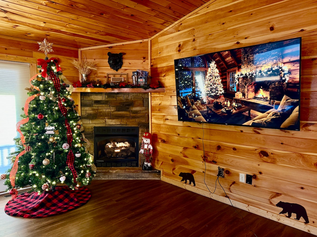 🎅Decorated for Christmas! 📍 15 min from Dollywood 🌄 Breathtaking mountain views 🔥 Private hot tub + gas fire pit 🛏️ Sleep in Comfort: 2 King bedrooms with luxury linens 🎯 Shuffleboard + board games 🚂 Hear the nostalgic Dollywood train whistle echo from the deck 📺 4K Ultra HDTVs throughout 🍽️ Full kitchen + dining for 6 💻 Fast Wi-Fi + work desk 🚗 Free parking + keyless entry