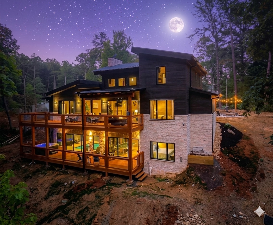 Experience unparalleled luxury at Windows to the Mountains, a modern marvel nestled in Gatlinburg with stunning views of Mt. Leconte. Chalet features a rooftop deck with a modpool, movie theater, and exquisite outdoor amenities. Enjoy a fully-equipped kitchen, cozy living room with a vapor fireplace, and a master suite with a spa-like bathroom. Complete with a coffee bar, game tables, and a sauna, Windows to the Mountains offers an exclusive retreat for discerning guests seeking a lavish escape.