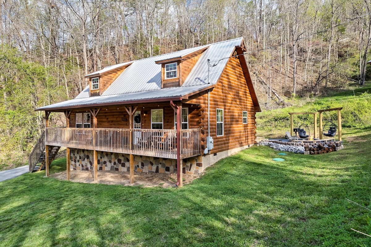 😀Private Playground ⛰Year Round Views 🏅Shuffleboard. 🥷 Custom Ninja Tower 💦Hot Tub 🔥Fire Pit, Hammock 🖌Rock Painting 🎯Foosball, Darts 🌲Private 3 acres 🎲Giant Jenga, Cornhole ✔️Fast WiFi 🧲Horseshoes 🎶Vinyl & Bluetooth 🍗Weber Grill Long Stay Discounts Available No other cabin in the area has all this! 9mi-Pigeon Forge - 10mi-Dollywood 17mi (30 min/NOT 50)-Smoky National Park & Gatlinburg