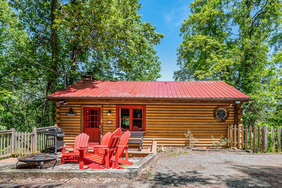 A true cozy log cabin located in the heart of the smokies 7 miles from the center of Pigeon Forge.Relax and enjoy the real wood burning fireplace on a cool night or enjoy the peaceful fire pit on our beautiful 3/4 acre wooded lot. Watch wildlife from the wraparound deck with a lovely pond view where the bears sometimes swim!The hot tub awaits after a long day of enjoying the smokies! For a final special touch enjoy the beautiful romantic heart tub. This little cabin is a perfect romantic escape