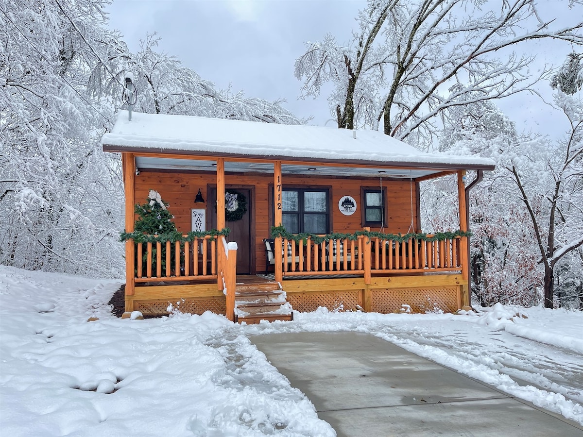 A true cozy log cabin located in the heart of the smokies 7 miles from the center of Pigeon Forge.Relax and enjoy the real wood burning fireplace on a cool night or enjoy the peaceful fire pit on our beautiful 3/4 acre wooded lot. Watch wildlife from the wraparound deck with a lovely pond view where the bears sometimes swim!The hot tub awaits after a long day of enjoying the smokies! For a final special touch enjoy the beautiful romantic heart tub. This little cabin is a perfect romantic escape
