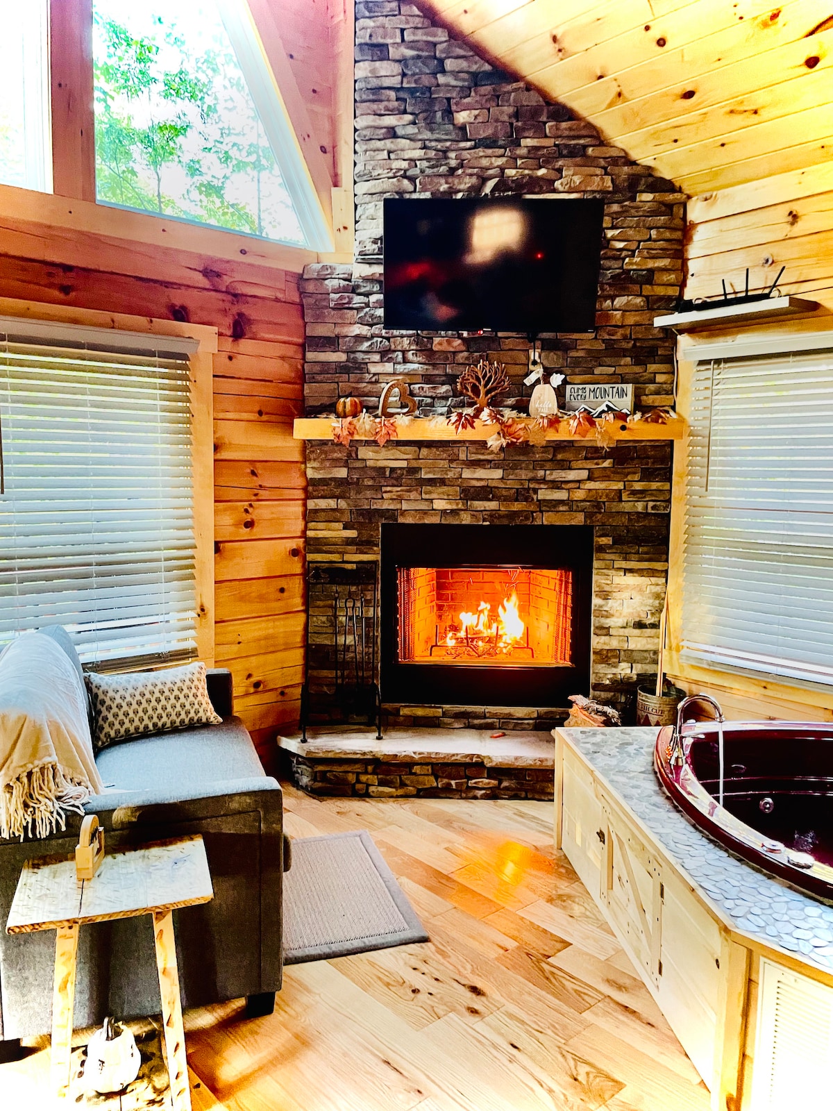 大雾山的天堂:Hearttub壁炉热水浴缸