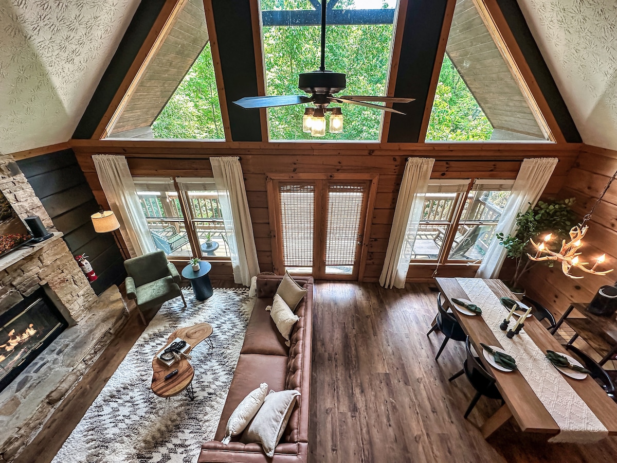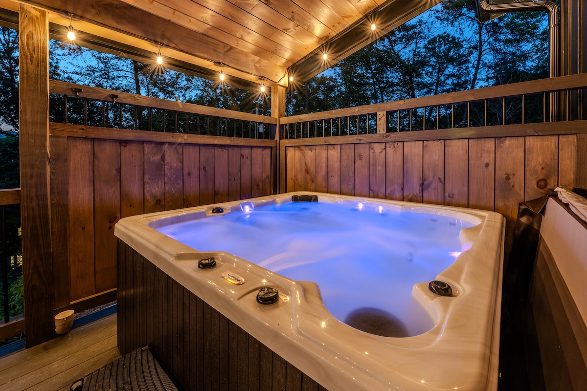 豪华树顶度假屋!热水浴缸、火坑和景观!