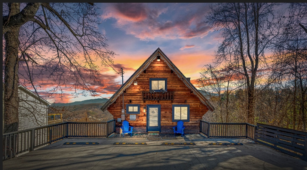 Highview Lodge is a 2-bedroom, 3-bath cabin offering nearly 2,000 sq. ft. of rustic charm in Sevierville’s peaceful Wears Valley. Enjoy stunning Smoky Mountain views from every room, a private hot tub, and easy access to a seasonal community pool and fishing ponds. Just 20 minutes from Pigeon Forge, this cabin is perfect for couples, families, and outdoor enthusiasts and is accessible via pristinely paved roads, unlike others in the area.