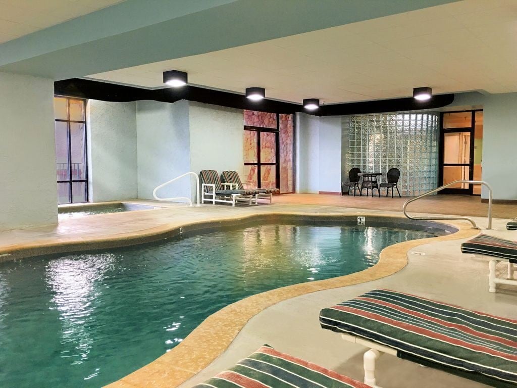 2卧室公寓,带室内泳池和热水浴缸。山景
