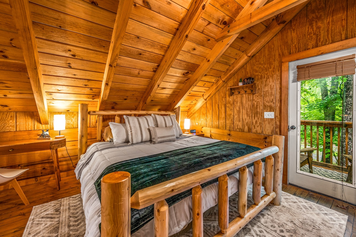 See why this cabin is Top 5% on Airbnb! Gorgeous, 1 mile to parkway and the Island! 2 spacious King Master Suites for a restful night. 2 full private bathrooms, sleeper sofa, sauna, hot tub, game room and fire pit! LOTS of amenities. You will love this open 1 level, 3 sets of French doors to the private balcony. Relax on the front porch with valley views or enjoy the hot tub in the large backyard space. The living space has high ceilings and a cozy fireplace for a retreat.