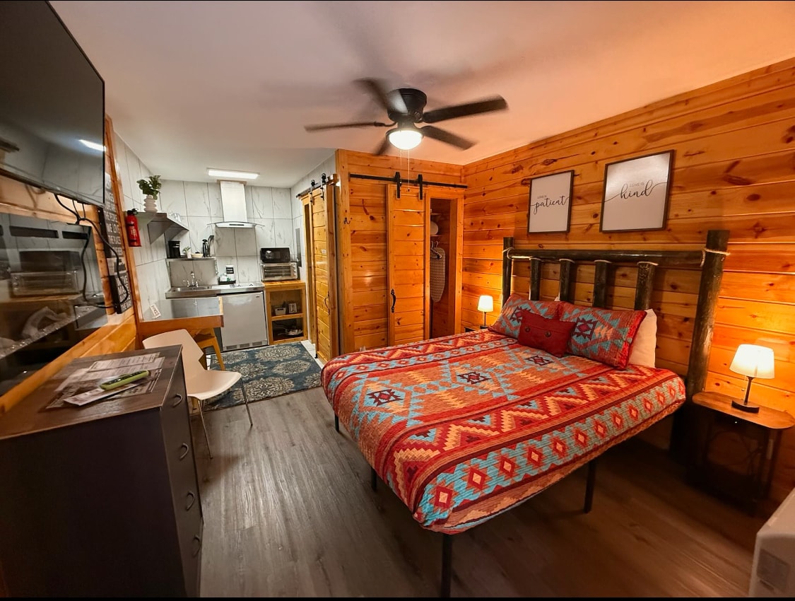 You’ll fall in love with this peaceful and unique mountain hideaway - just 10 minutes from Dollywood! Tucked away in the quiet woods yet close to top attractions, local dining, and fun-filled events, it’s the perfect blend of seclusion and convenience for an unforgettable stay. Enjoy the beauty of the Great Smoky Mountains, visit Dollywood, or simply unwind under the stars. With rustic charm and modern comfort, this studio is designed to make your stay relaxing, memorable, and truly special.
