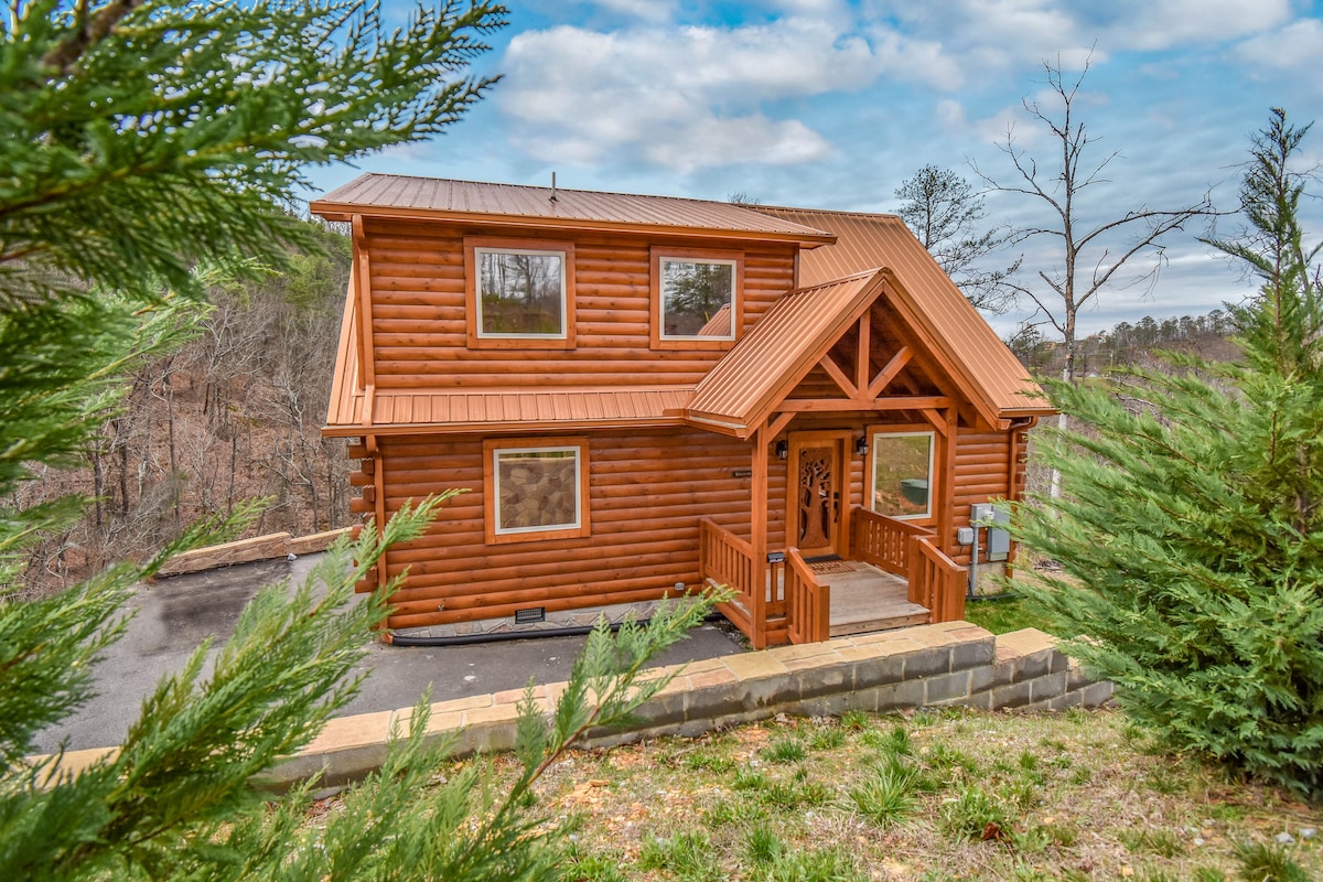 ♦ BRAND NEW 2B/2B Cabin ♦ 5 miles to ALL Pigeon Forge Attractions and 10 miles to Smoky Mountain National Park ♦ 2 King Beds, 1 Queen Sleeper Sofa ♦ All Rooms Have RoKu TV & Ultra-fast Wifi ♦ 6 Person Hot Tub ♦ Modern Minibar, Wine glasses, Decanter set ♦ Mini-Golf and Board Games ♦ Huge Lounge for 6 and Gas Fire Pit ♦ Outdoor BBQ and Picnic Table ♦ Fully Stocked Kitchen: Coffee maker, Creamer, Spices, Instant Pot, Kettle, Blender, Plates, Silverware ♦ Washer/Dryer ♦ Paved and Easy Driveway